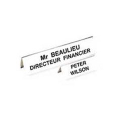 Obj. čislo: FE530450 Obojstranne čitateľná stolová menovka z pevného PVC, vhodná na konferencie, recepčné pulty, ceny tovarov a popis produktov. Dodávaná s vymeniteľnou prázdnou kartou. Väčšie balenie 50 ks.Rozmery: 45x120 mmVýrobca: Fellowes