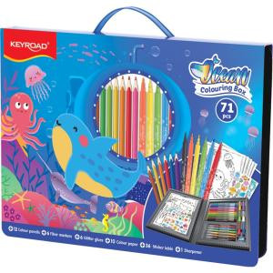 - Sada na kreslenie KEYROAD Ocean, 65 ks, krabica s rúčkou, modrá