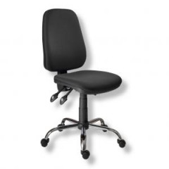 Moderná kancelárska stolička s vysokým fixným sieťovaným operadlom s výškovo nastaviteľnou bedrovou opierkou a s bohatým čalúnením sedadla.